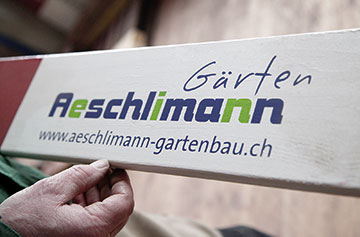 Absperrlatten – erzeugt aus Schweizer Holz – bedruckt und fertig verarbeitet in einem Schritt.