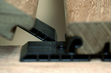 Die Schnappverbindung ermöglicht eine schnelle Positionierung der Verbinder an der Diele. Die rückseitige Positionsschraube gibt zusätzlichen Halt und sichert die Dielen in der Längsrichtung.