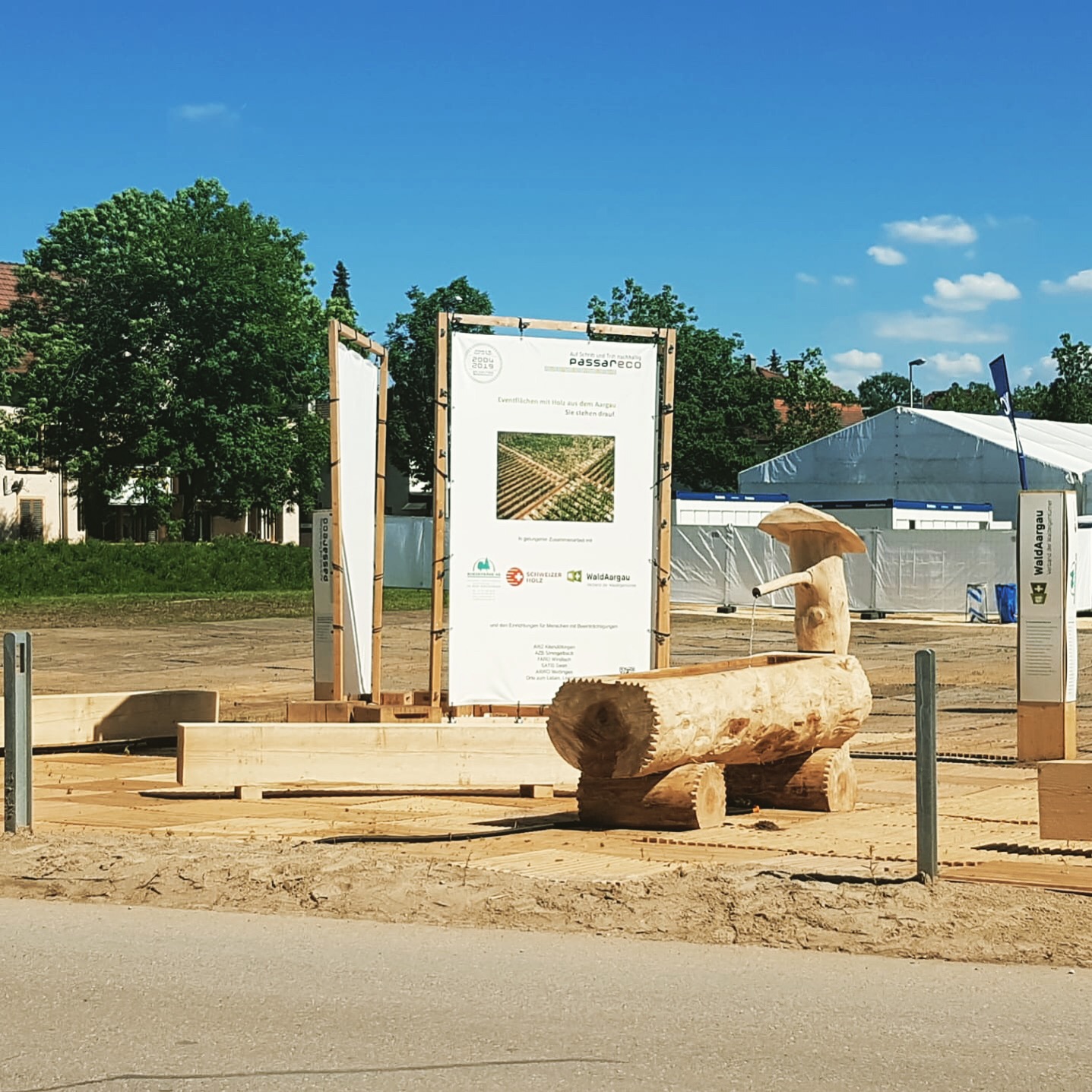 Für das eidgenössische Turnfest 2019, haben wir zusammen mit Passareco, den Werkstätten ARWO, AZB, Faro, Satis, Stiftung Lebenshilfe, die Bodenroste herstellen dürfen. Dank dem Mitwirken von WaldAargau und Ortsbürgergemeinde war es möglich rund 1500 fm Aargauer Holz zu verbauen.